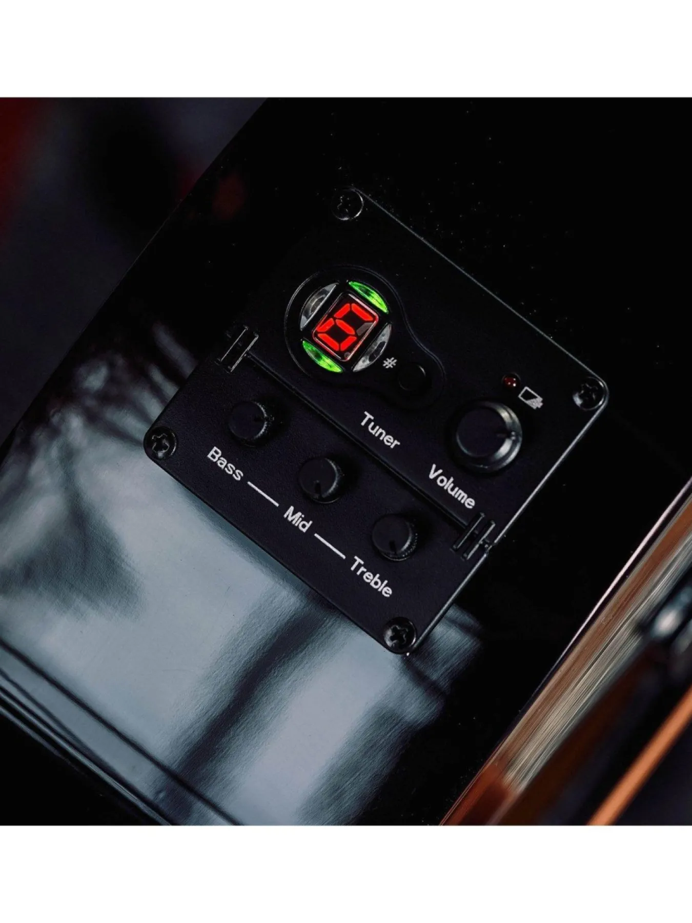 The 3Rd Avenue Electro Acoustic Guitar Pack Is A Full-Size Guitar Suitable For Players Aged 12 And Above. This Guitar Is Perfect For Any Beginner Who Might Be Interested In Performing, Recording, Or Just Playing With A Bit More Volume And Control Over The Tone. The Guitar Features A Standard Dreadnought Body, With A Cutaway Which Allows You To Play The Higher Frets Comfortably And With Ease. With This, A Built-In Preamp Controls Your Sound When Plugged Into An Amp Or Other Speaker Setup. The Preamp Has Controls For Overall Volume, As Well As Having A 3-Band Eq To Allow You To Adjust The Bass, Middle And Treble Features By Cutting Or Boosting Them. Along With This, There Is A Built-In Tuner With A Very Easy To Read Display, And A Low-Battery Indicator. This Is Powered By A 9 Volt Battery That Is Not Included. Included Is A Gigbag With A Zip Pocket In Front, Which Is Great For Transport Or Storage Of The Instrument, A Spare Set Of Strings For Any Mishaps Or Just For When The Strings Get Old, Some Guitar Picks And A Guitar Strap.