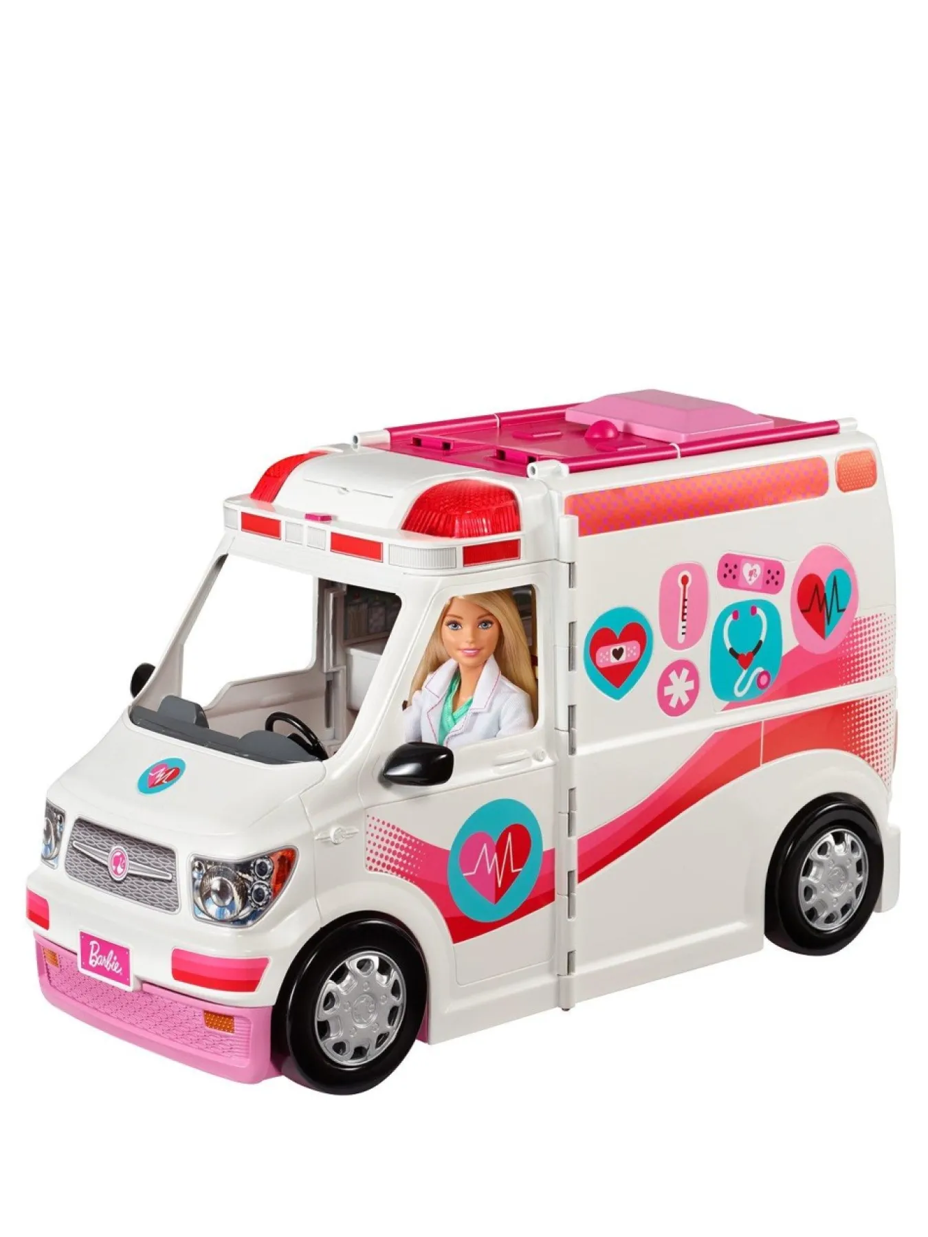 Coming To The Rescue When People Need Care, Your Child Can Activate The Emergency Sirens On The Barbie Care Clinic Vehicle With A Button Press. When She Arrives At The Scene, Lift The Level At The Back And It’Ll Instantly Transform Into A Full Barbie Clinic With A Check-In Stand, Waiting Room, Treatment Area And Even A Gift Shop!