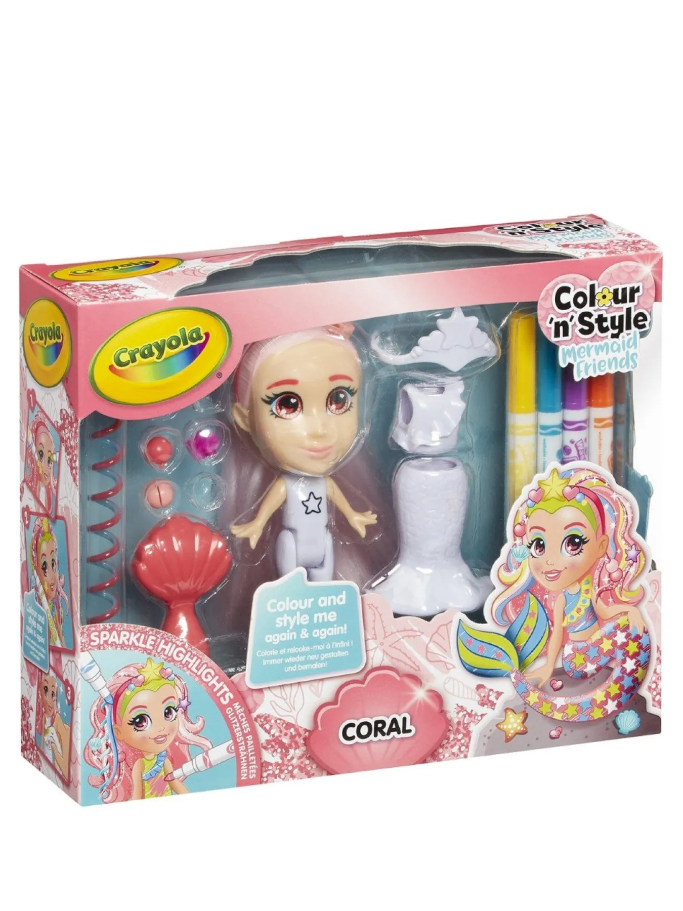 Colour And Style Your Magical Mermaid Over And Over! Use The Pens To Colour Nd Style Anyway You Like And Then Decorate Using The Reusable Stickers For A Unique Look Every Time. You Can Style Her Glittering Hair With The Brush, Tiara And Charms And Then Transform Her With The Clip On Tail Into An Amazing Mermaid For Endless Creative Play!