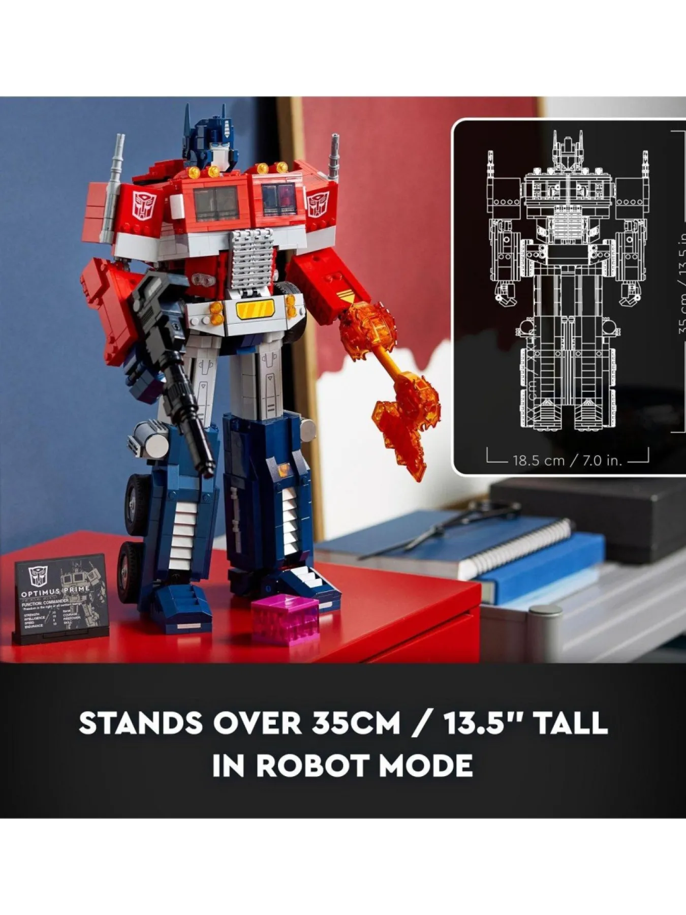 In Truck Mode, The Model Measures Over 5.5 In. (15 Cm) High, 10.5 In. (27 Cm) Long And 4.5 In. (121 Cm) Wide. In Robot Mode, The Model Stands Over 13.5 In. (35 Cm) Tall.