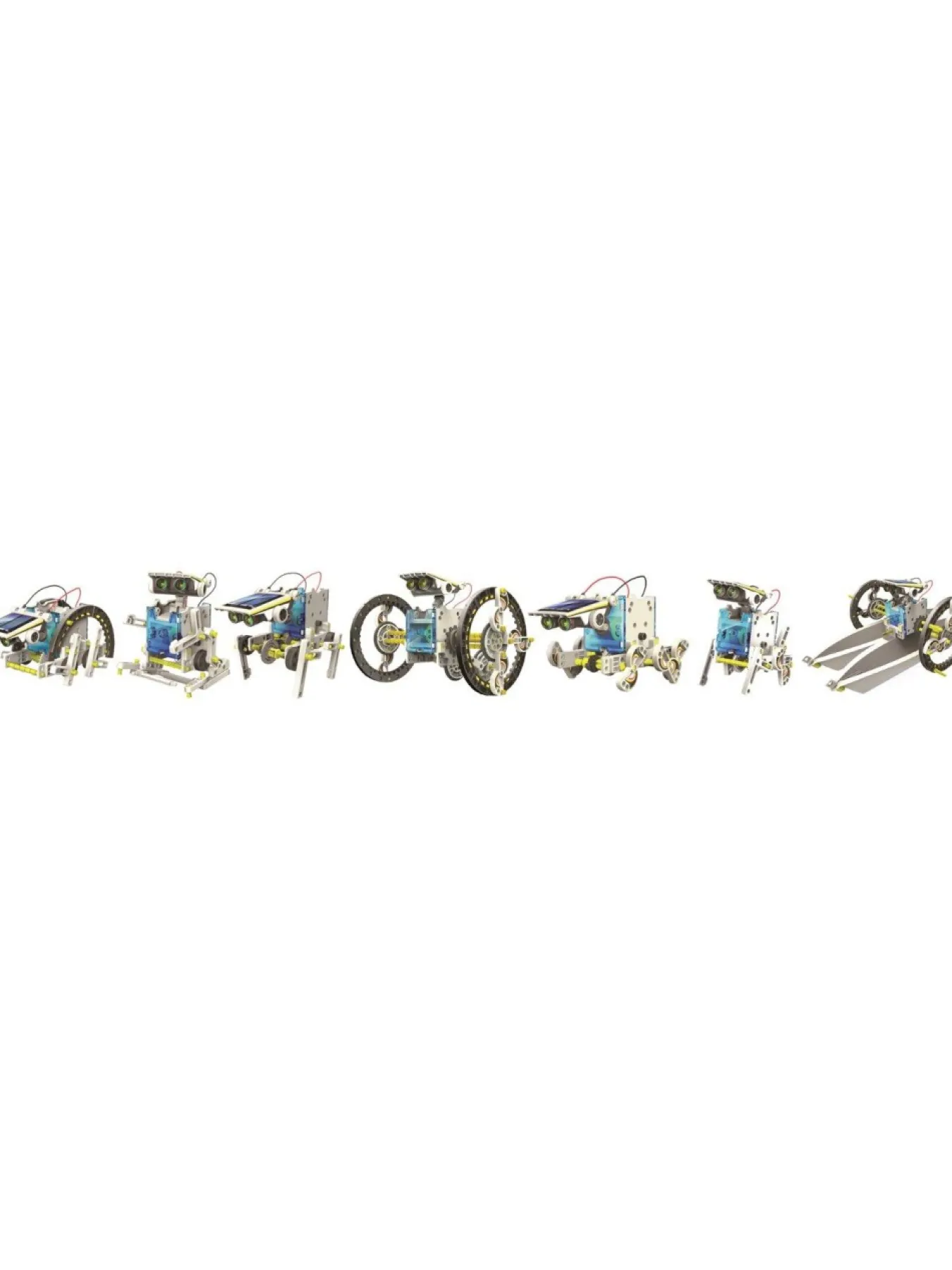 With The Days Of Renewabe Energy Upon Us, It’s Time To Learn About How Alternative Energy Types Can Work! The 14 In 1 Solar Robot Kit Allows You To Construct A Robot Out Of Various Parts Allowing The Robot To Go In Water In Addition To Land! The Kit Is Completely Powered By Solar Energy, So There Are No Batteries Required! There Are Various Building Levels With Level 1 For The Amateurs And Level 2 For The Pros! You Can Control The Direction By Changing The Polarity, Which Will Reverse The Direction Of The Motors. You Can See What’s Happening Within The Kit Thanks To The Transparent Housing Which Allows You To See Gears Moving. – Build Your Own Solar Powered Robot – 14 Different Combinations To Make – Adjustable Polarity To Change Direction – Works On Land Or Water – Learn About Renewable Energy