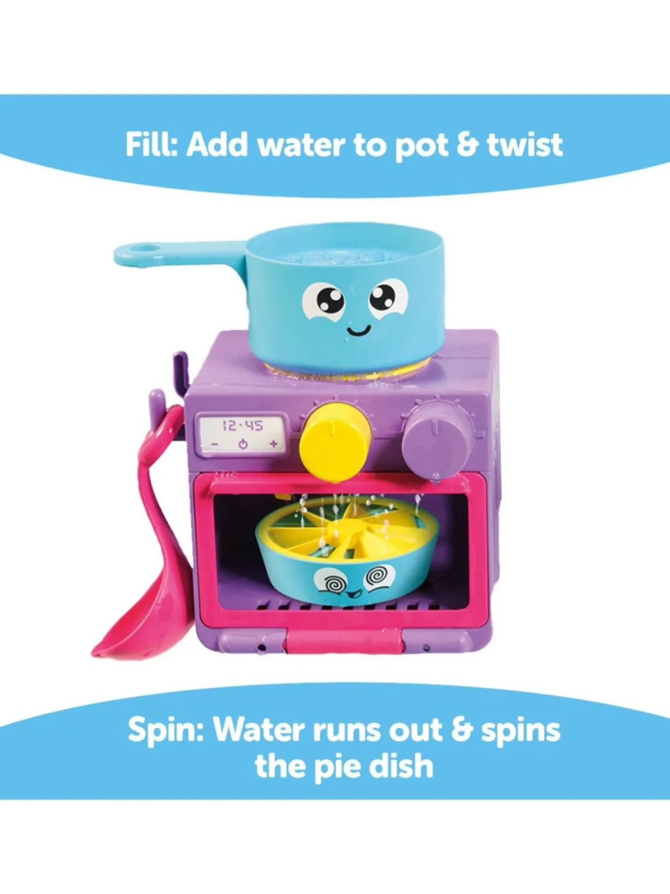 There’s A Ladle For Scooping And Stirring, Plus A Pie Dish That Slides In Past The Oven Door. Give Your Pan A Quarter Turn And The Water Runs Through To The Oven To Send The Pie Dish Spinning! When It’s Washing Up Time, Empty Your Dishes In The Sink, Pump The Handle… Water Really Flows From The Tap!