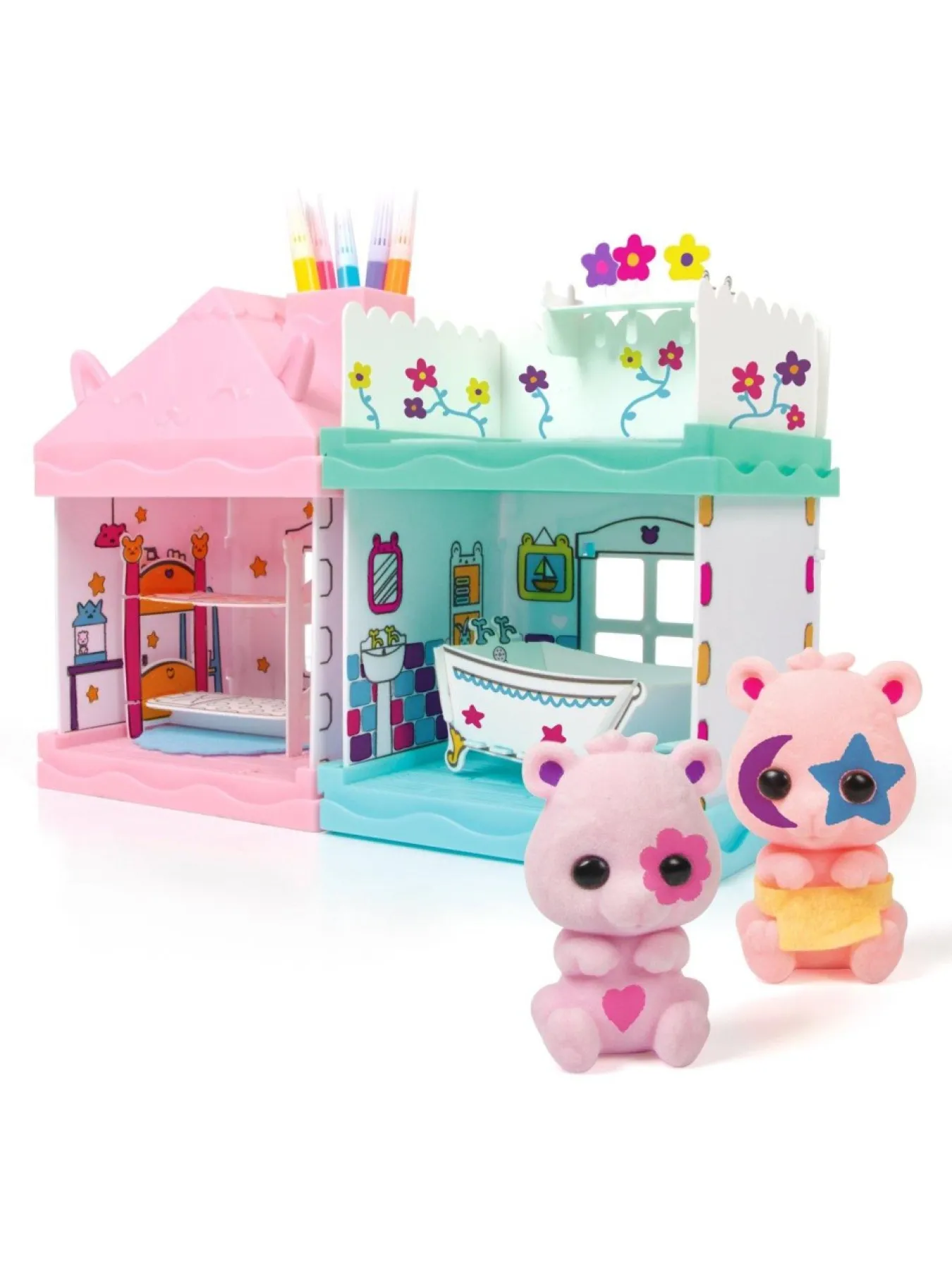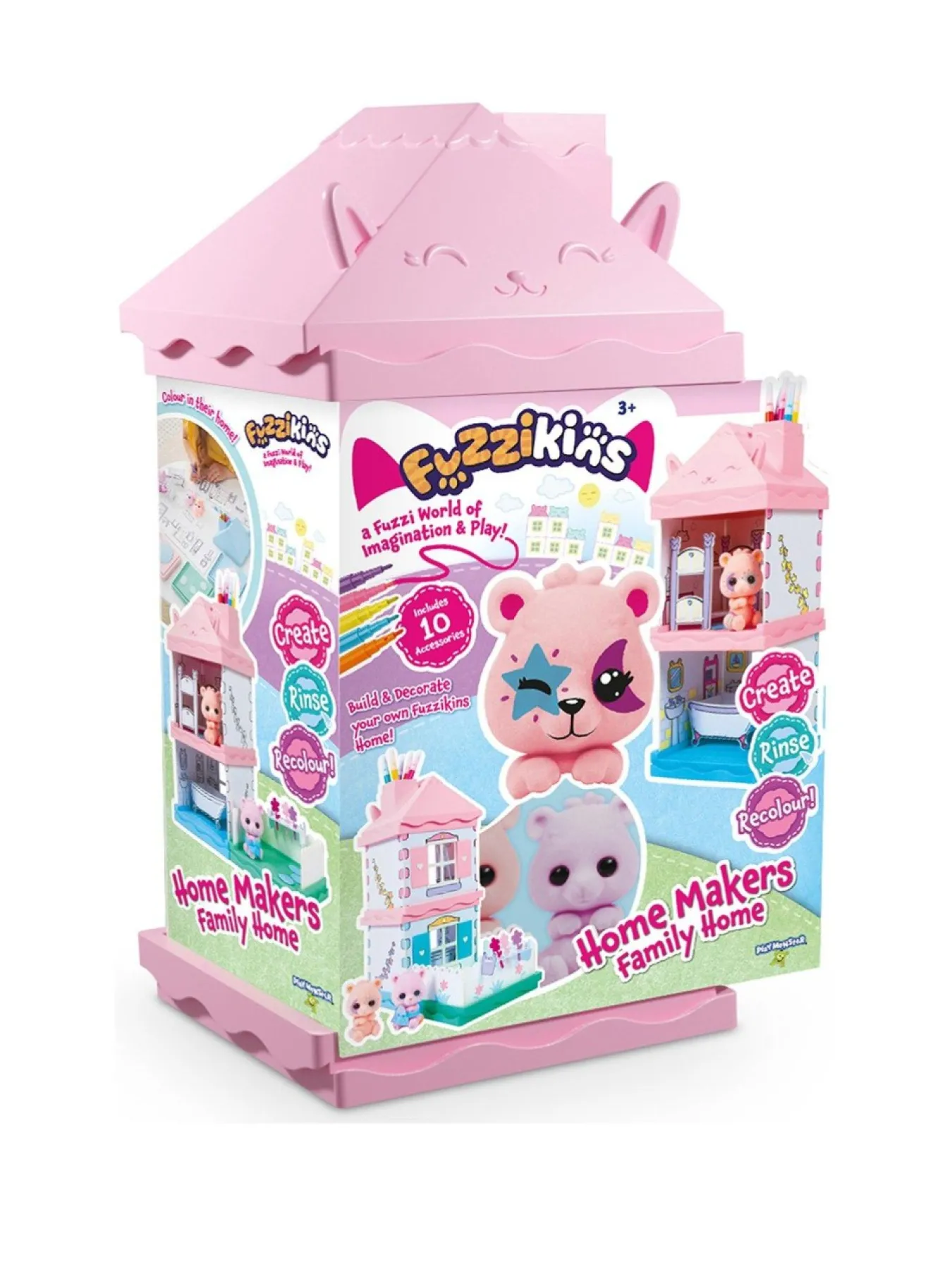 Fuzzikins Home Makers Family Home Is A Modular Home To Build, Decorate And Play! This Spacious House Comes With 2 Rooms And A Garden, 2 Fuzzikins Bears, 10 Accessories And It’s Packed Full Of Play Value! You Can Build Your House In Multiple Different Ways And Add Other Homemakers Sets To Your Home To Extend It. Colour Your Fuzzikins With The Washable Pens Included, Then Rinse In Warm Water, Dry And Re-Colour When You Wish To Change Your Designs. The Walls Of The Family Home Can Also Be Coloured And Easily Wiped Clean When You With To Re-Decorate!