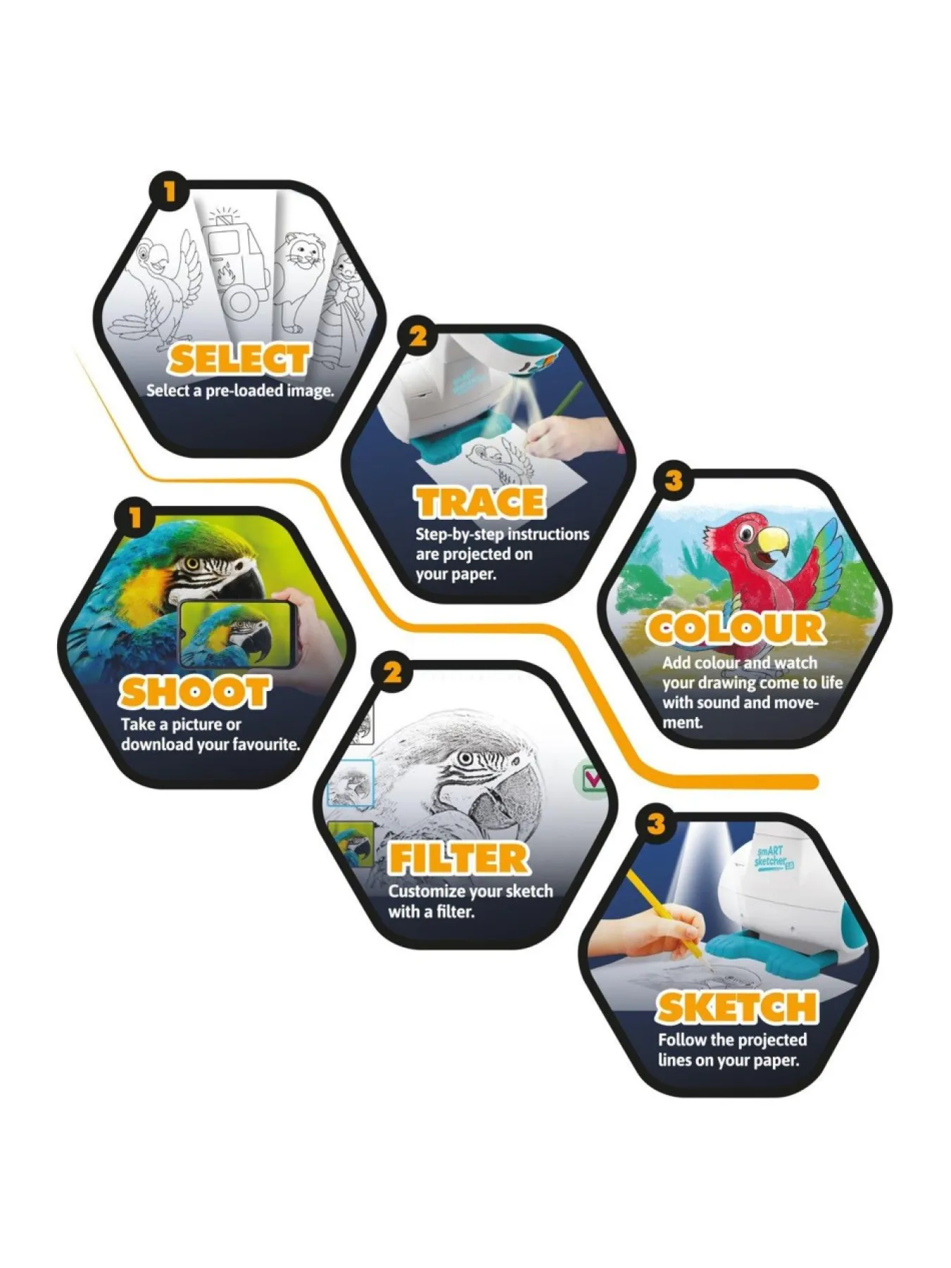 Artists Can Project And Sketch With The Smart Sketcher Projector 2.0. Kids Aged 5+ Can Choose Pre-Loaded ‘Learn To Draw’ Pictures Or Use The Free Downloadable App To Load Their Own Photos!