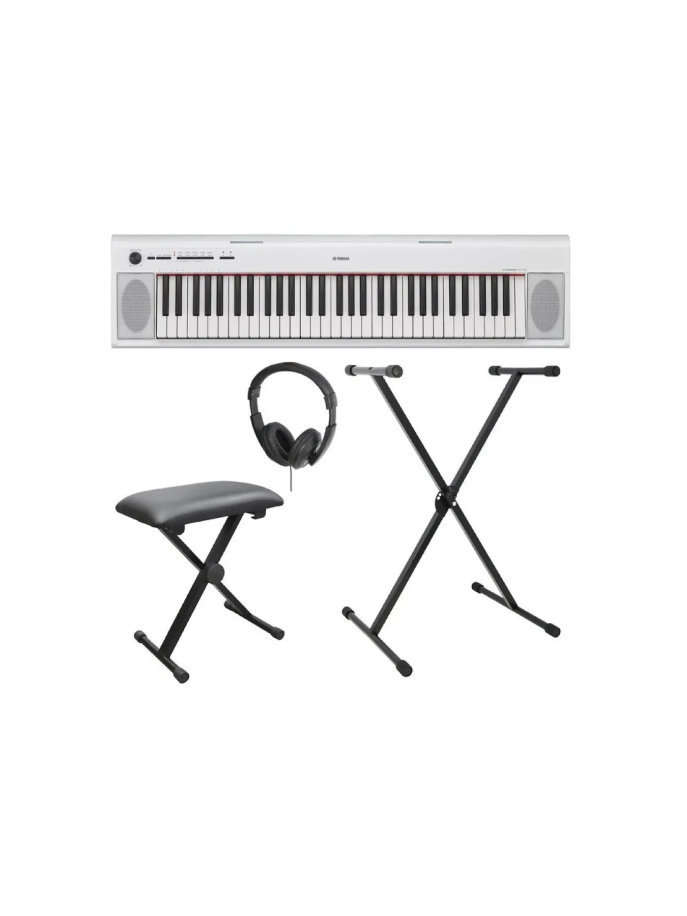 Yamaha Piaggero Np12 White Electronic Keyboard With Stand, Bench, Headphones And Online Lessons