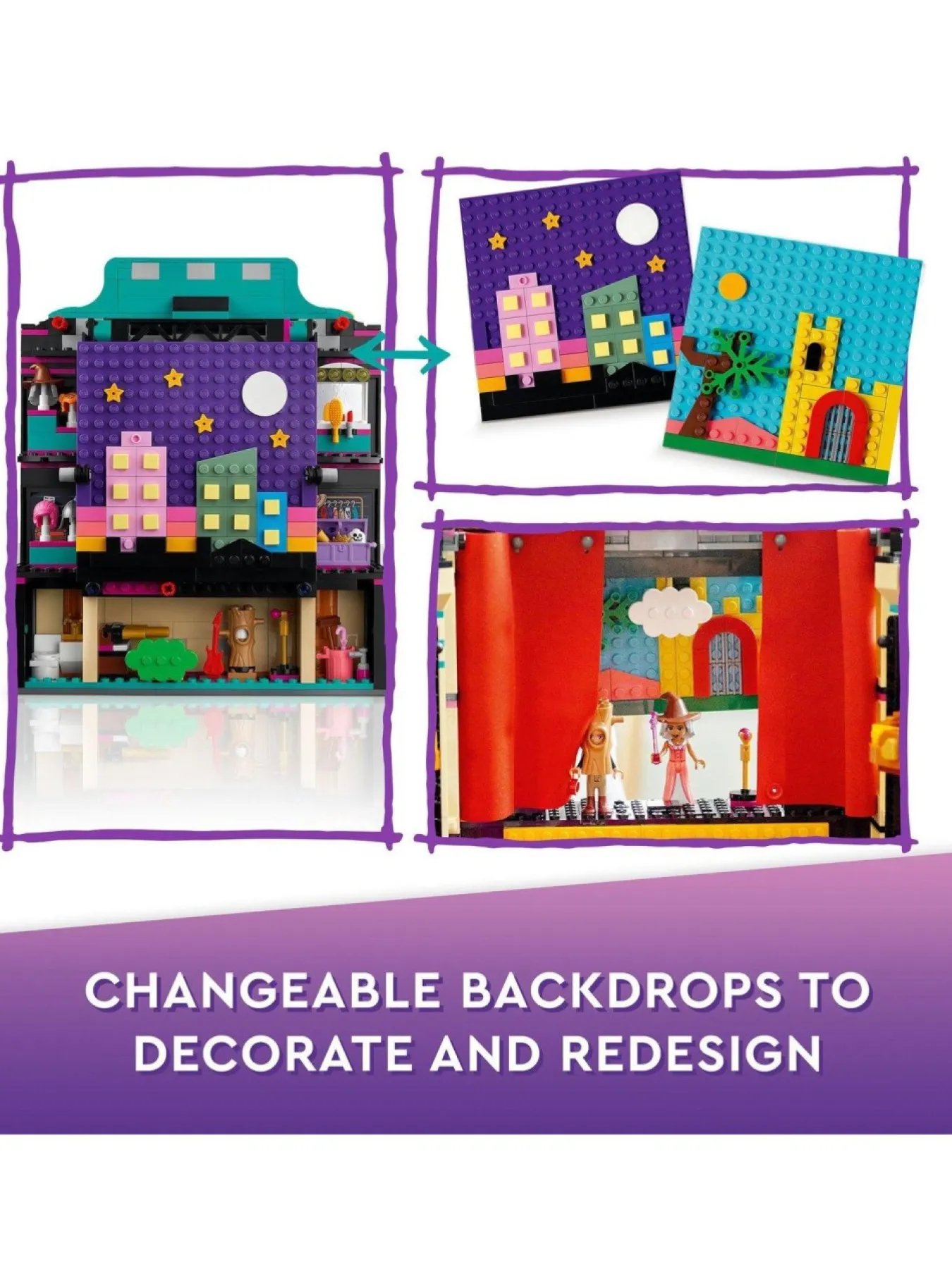 This Heartlake City Playset Features A Stage, Dressing Room, Orchestra & Balcony Seating And Lights Rigging. The Victorian Facade Opens To Reveal The Inside, Which Resembles A London West End Theatre. There Are Also 4 Lego Friends Mini-Dolls: Andrea, Freya, Prof. Adrian And Ollie With Loads Of Accessories And Toy Theatre Props Including An Organ, Wig, Helmet, Hats, Megaphone, Guitar, Radio, Microphone, Prop Box With Crown And Skeleton Head And Script Elements. Opening The Textile Theatre Curtains Reveals 2 Backdrops – A Medieval Castle And A Nighttime Cityscape. Spin The Theatre Round And There’s Rigging For The Lights And A Dressing Room Where Characters Get Made Up, Just Like At A Real Theatre! Kids Can Create Dramatic Scenes Of Their Own With Toy Props. Lego Friends Andrea, Ollie And Freya Can Act Out Parts Under The Tutelage Of Prof. Adrian.