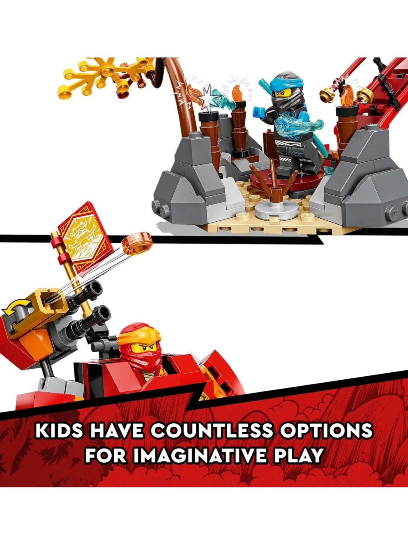 This Lego Ninjago Masters Of Spinjitzu Building Set Includes 8 Minifigures: Lloyd, Kai, Cole, Nya, Master Wu, Pixal, Plus Evil Snake Warriors Cobra Mechanic And Boa Destructor With Their Rammer Vehicle, To Play Out Fast-Paced Action. New For January 2022, When Kids Defeat The Ninjas’ Enemies And Complete Their Mission, They Are Rewarded With A Collectible Banner.