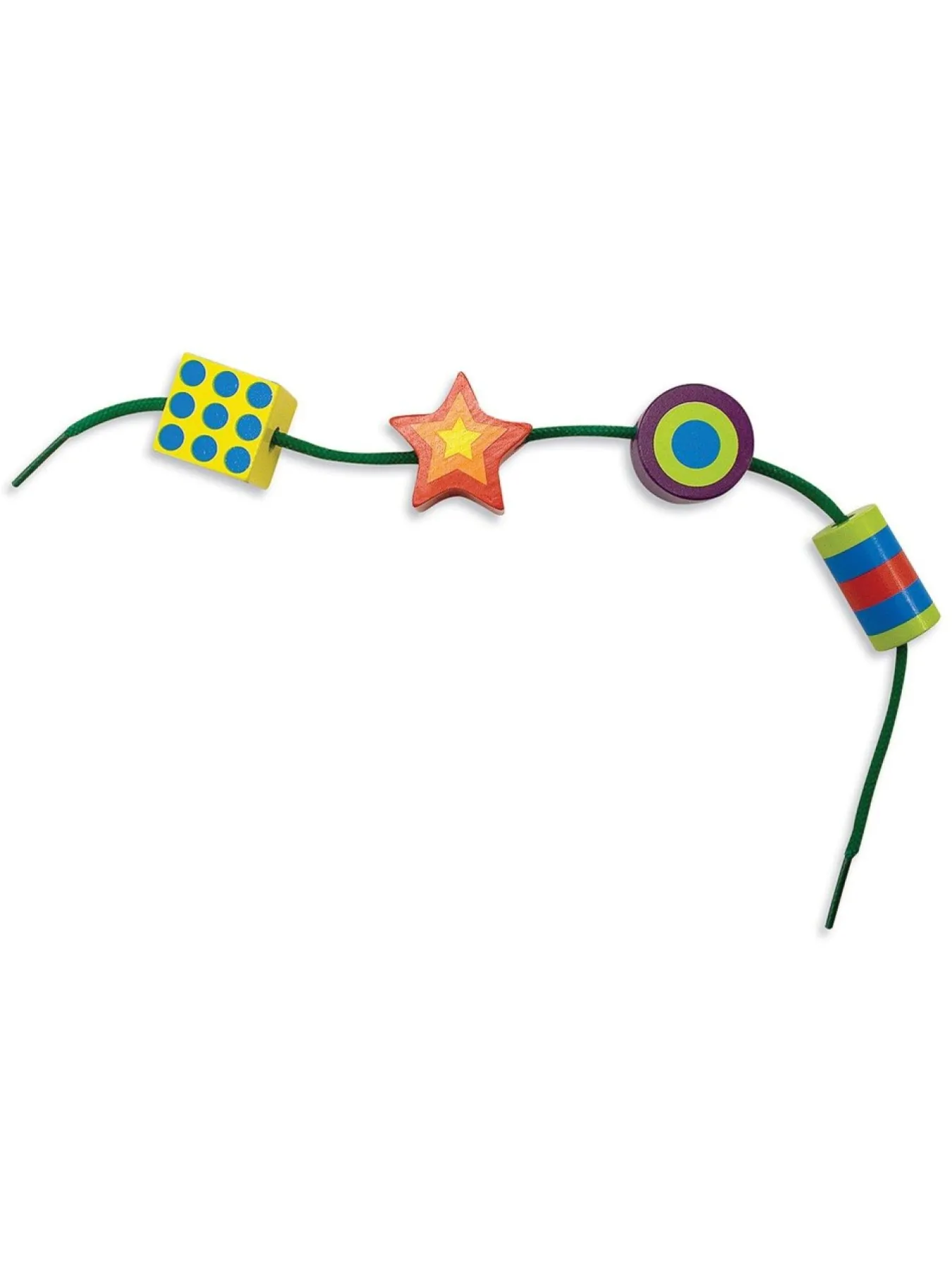- Wooden Beads In Familiar Shapes For Skill-Building Lacing Activity