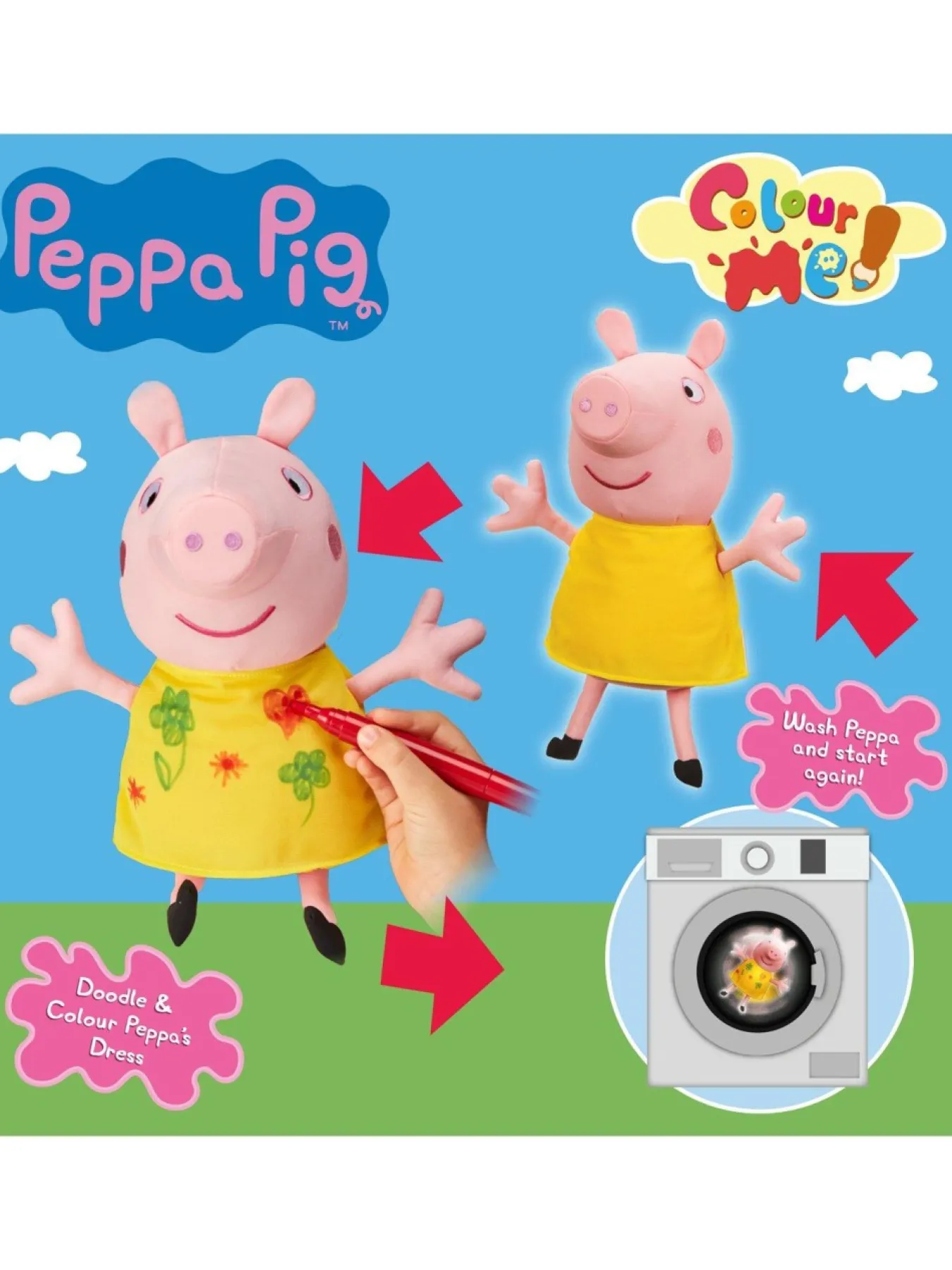 Have Lots Of Colouring Fun With Colour Me Peppa! This Peppa Pig Soft Toy Features Classic Peppa Pig Styling And Measures 30Cm Tall. Draw And Doodle On Peppa And Her Dress. When You’Ve Finished, Simply Wash Her And Start Again! Includes 2 Pens. Make Sure You Use These Or Other Washable Pens Only. Encourages Creative And Imaginative Play. Machine Wash Peppa Separately, Hang To Dry And Reshape. Suitable For Ages 3 Years And Over.