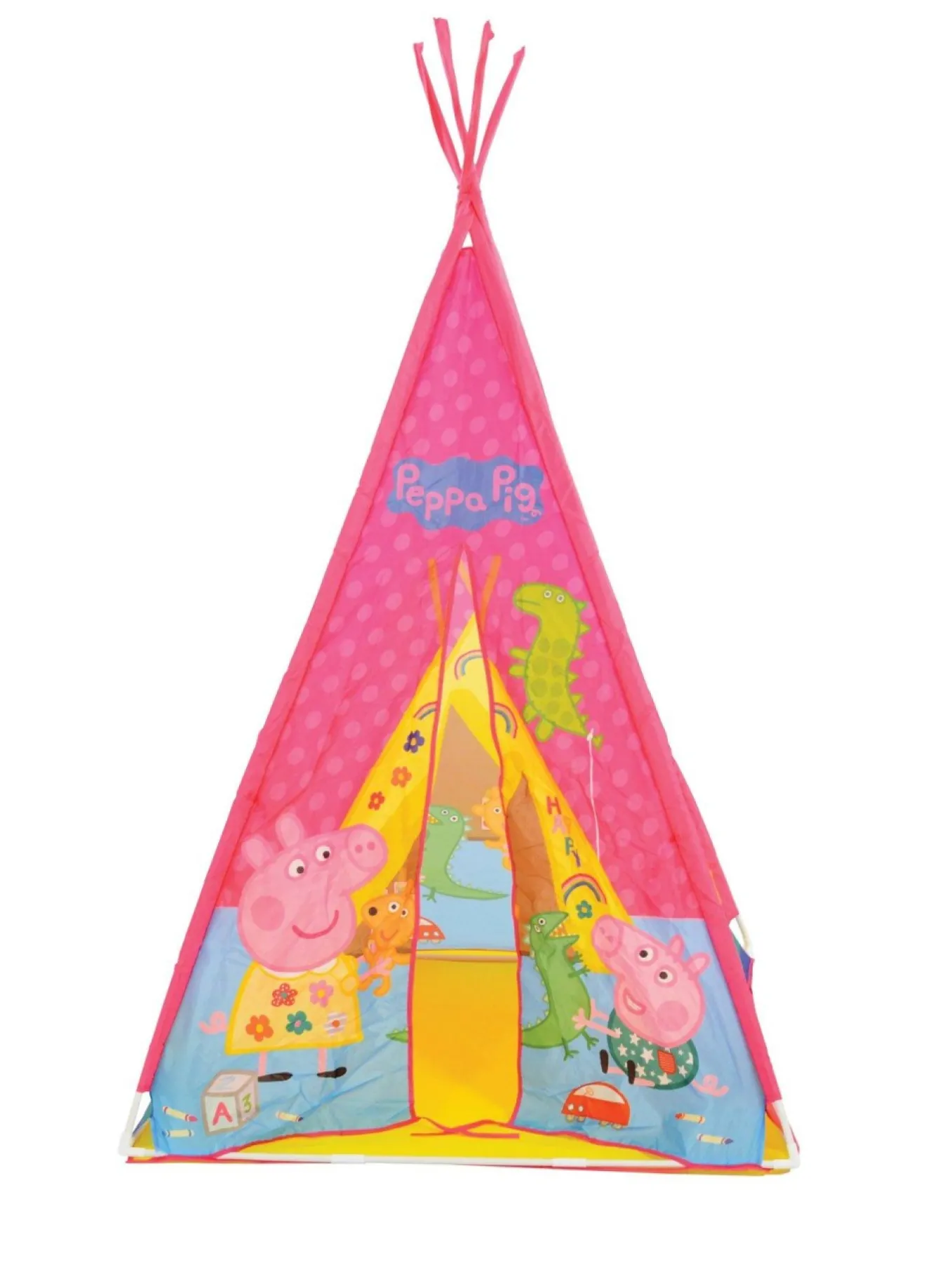 Let Imagination, Creative Play And Adventure Run Wild With This Peppa Pig Tepee! Suitable From 3 Years, This Is The Perfect Den For Children As They Start To Explore Imaginative Play And Independence. Decorated With Full Character Graphics It’s The Perfect Environment For Any Fan To Immerse Themselves In Play. With Closed Top, Integrated Floor And Durable Polyester And Pvc Materials As Well As Water And Uv Resistance; Play Can Continue Come Rain Or Shine, Inside Or Outside. Simple Tie Back To The Front Flaps Allow For Both Open Play Or Closed For Secret Hide-Always And Naps! For Parents, The Tepee Is Ideal Due To It’s Easy Assembly; The Tent Is One-Piece Design Which Is Shaped By Inserting The Pre-Fixed Elastic Snap Action Poles Through Ready Made Channels And At The End Of The Day, The Whole Product Folds Down To Compact Size For Easy Storage Or Transportation – Plus It’s Wipe Clean.