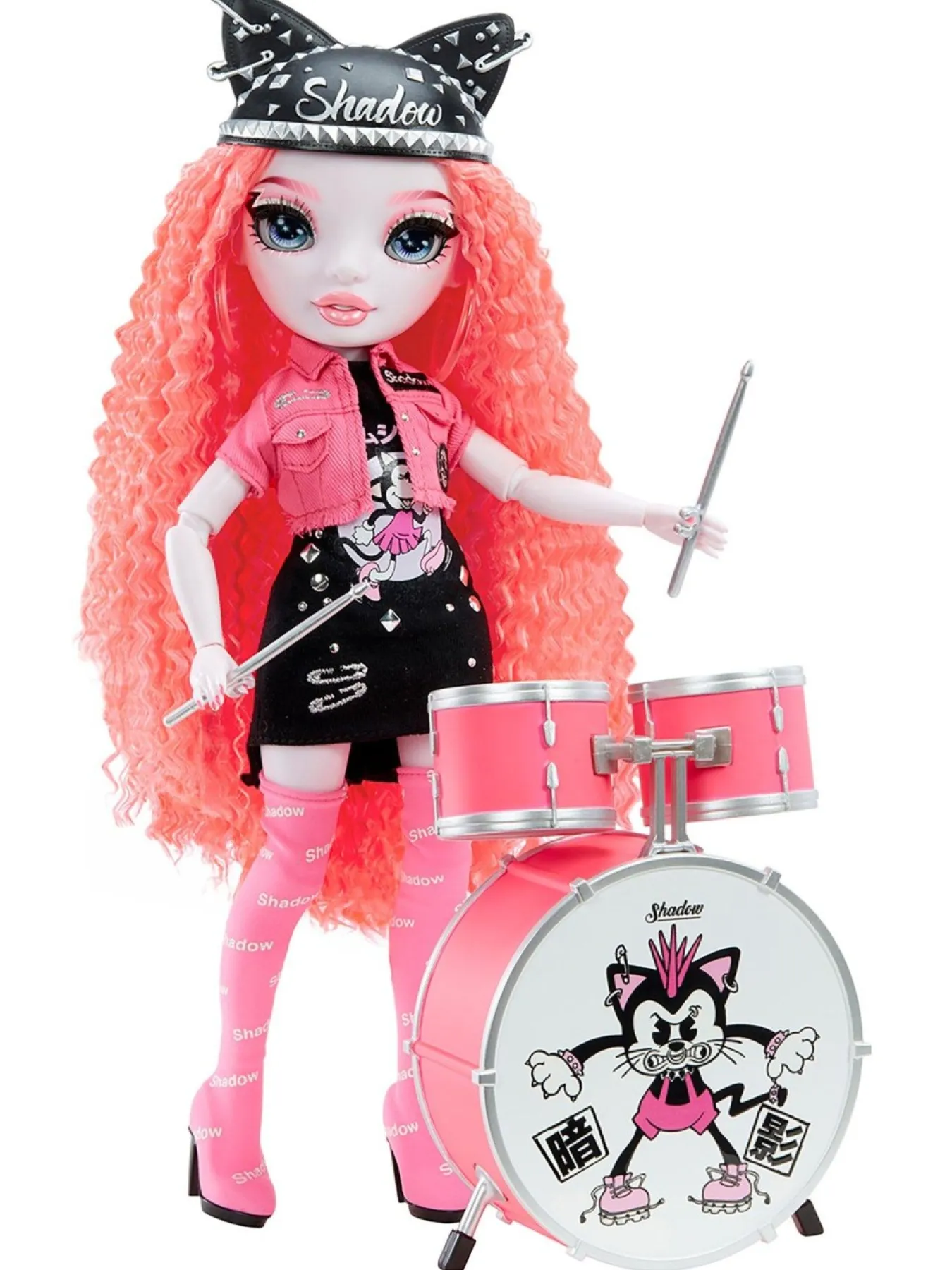 - * Neon Shadow Rockband Intruments: Mara Comes With Drum Set,Drumstick Personalized With A White And Pink Screen-Printed Cat To Pair To Her Dress