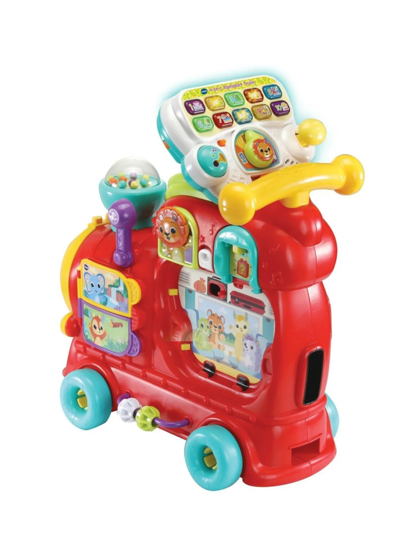 - 4-In-1 Alphabet Train Includes Modes For Sit-Down Play, Walker, Pull-Along Wagon And Ride On.